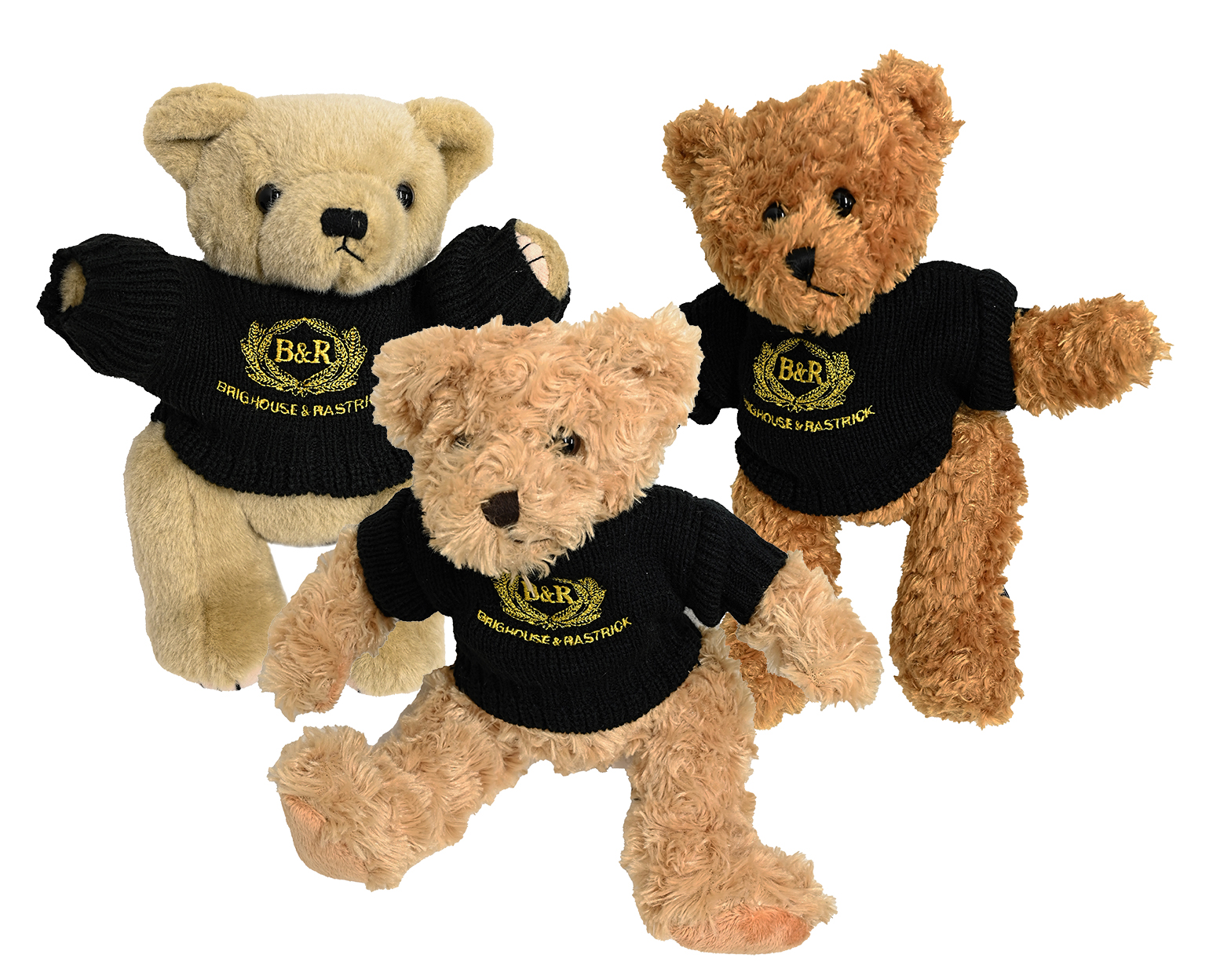 Brighouse & Rastrick plush teddy bears, each wearing jumpers with embroidered band logos.